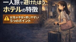 女性の一人旅で夜が怖いと感じたときの現実的な対処法を5つ紹介。外出を控える判断や夜道の対策、ホテルで安心して過ごすコツなど、不安を減らす方法を解説します。