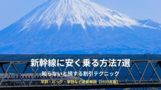 交通・移動 新幹線に安く乗る方法7選!知らないと損する割引テクニック【2025年版】 旅行の準備をこれから始める方は、全体の流れをまとめた「旅行準備の完全ガイド」も先に確認しておくと、計画ミスや忘れ物を防げます。「新幹線って高いよな…もっと安く乗れないかな」「早割とか色々あるけど、結局どれが一番お得なの?」新幹線は便利ですが... 2025.12.15 交通・移動